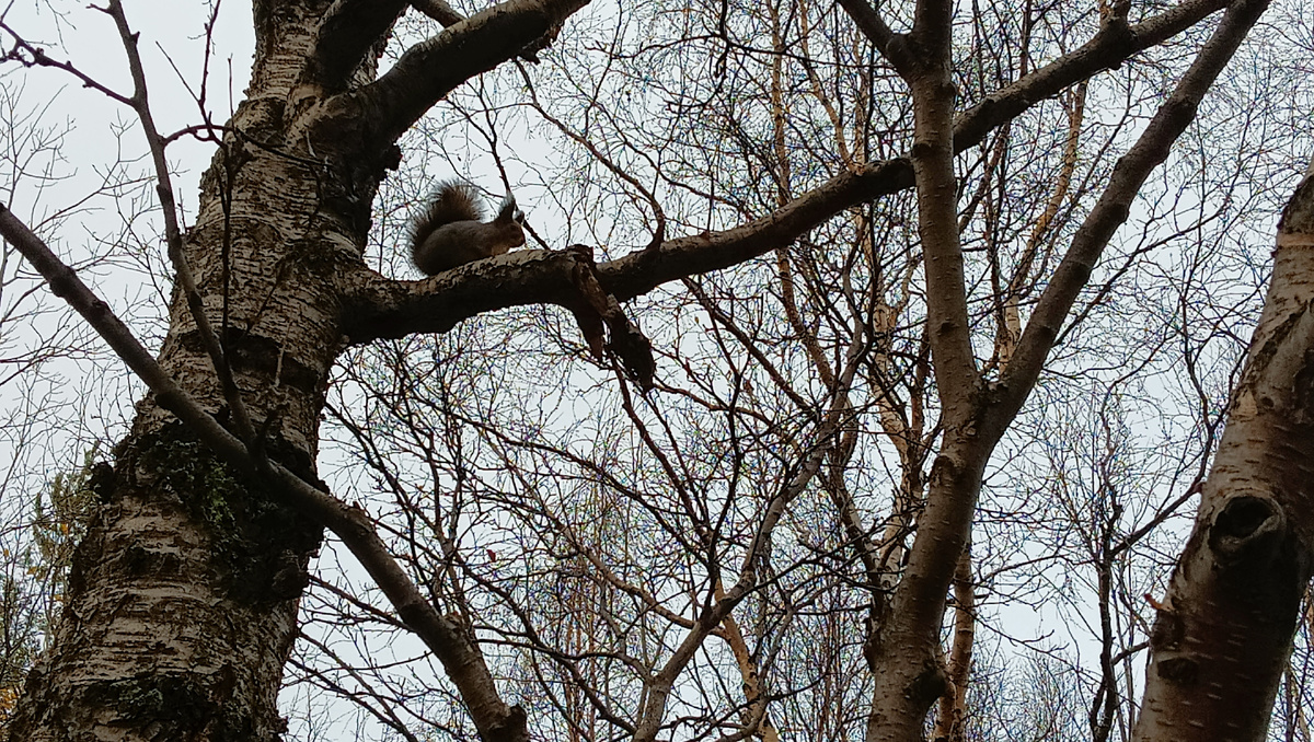 По ощущениям – собака средних размеров. Резко оборачиваюсь, а это за мной белочка бежит, торопится. Обогнула меня, села и протягивает ко мне передние лапки.