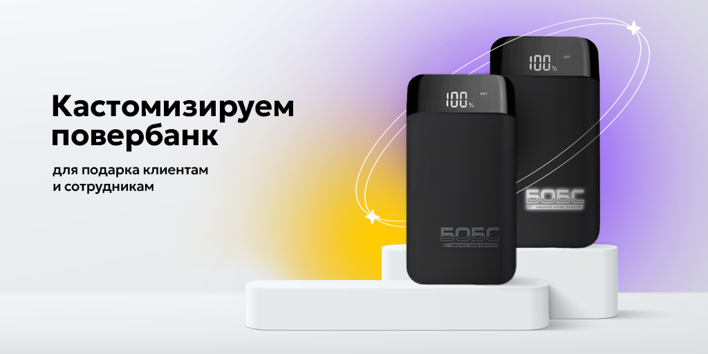 Подготовить макет и изготовить повербанки с логотипом компании-заказчика. 1 462 шт. У клиента не было конкретной идеи подарка, поэтому мы начали работу с интервью для выяснения потребностей, а затем предложили несколько товарных подборок. В итоге решили дарить повербанки: подобрали оптимальную модель и согласовали ее с клиентом.