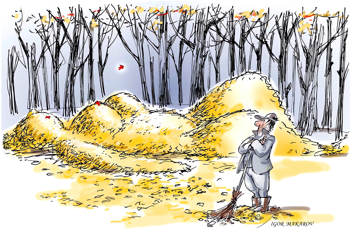Знаменитый советский и российский художник Игорь Макаров этим летом разменял девятый десяток. Но, несмотря на солидный возраст, он каждый день неизменно садится за свой любимый стол и рисует, зная, что тонких, весёлых, философских, лиричных и умных работ очень ждут. В этом году карикатура его авторства в очередной раз попала в список лучших в мире по версии Cartoon & Caricature Information Center. Любимые образы художника, которые он часто обыгрывает, — золотая осень и песочные часы, символизирующие уходящую человеческую жизнь и время.