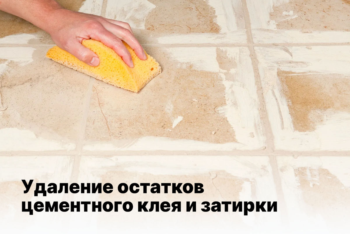Крупные застывшие комки цементного состава можно осторожно убрать с помощью ножа или шпателя с металлическим полотном. Работать необходимо аккуратно, чтобы не повредить лицевую поверхность плитки. Для удаления остатков цементного клея и затирки мы рекомендуем применять средства, специально разработанные под эту задачу. Нужно понимать, что кислота оказывает разрушительное воздействие на цемент, размягчая его и делая рыхлым.