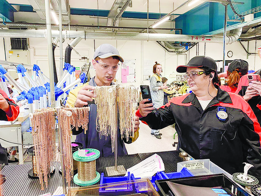 Конечно же, мы посетили самое красивое производство – ювелирное. Увидели, как производят ювелирные цепи, когда из тонкой проволоки получаются блестящие браслеты и цепочки, которые продаются сегодня в ювелирных магазинах по всей России.