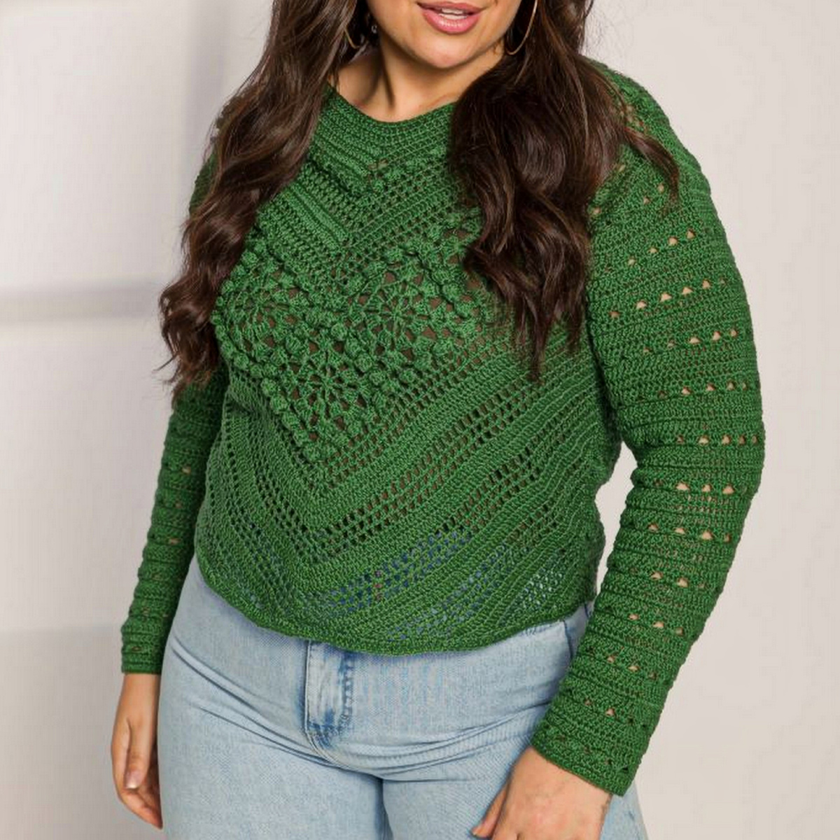 Привет, друзья мои! Сегодня у нас немного необычная крючкотворная подборка. Во-первых, из-за моделей в ярких красках и оригинальных сочетаниях. Во-вторых, потому что я добавила пару топов. Осенью топики, конечно, неактуальны. Но вдруг вы собираетесь в отпуск в тёплые страны или любите «готовить сани летом». Сохраняйте в свою копилку! ♥ Для вязания нам потребуется 9 мотков зелёной пряжи: 100% мерсеризованный хлопок; 50 гр — 167 м. Крючок № 2,5. Размер джемпера: 50-52. Для вязания нам понадобится 5 мотков белой пряжи: 100% мерсеризованный хлопок; 50 гр — 167 м. Крючок № 2,5. А также 4 пуговицы диаметром 1,5 см. Размер топа: 44-46. Для вязания нам потребуется по 1 мотку бирюзовой, фиолетовой и оранжевой пряжи: 100% акрил; 100 гр — 200 м. Крючок № 4. Размер джемпера: 44-46. Для вязания нам понадобится 6 мотков бежевой пряжи и по 1 фиолетовой, розовой и оранжевой пряжи: 100% мерсеризованный хлопок; 50 гр — 135 м. Крючок № 3,5. Размер джемпера: 44-46. Для вязания нам понадобится 2 мотка кора