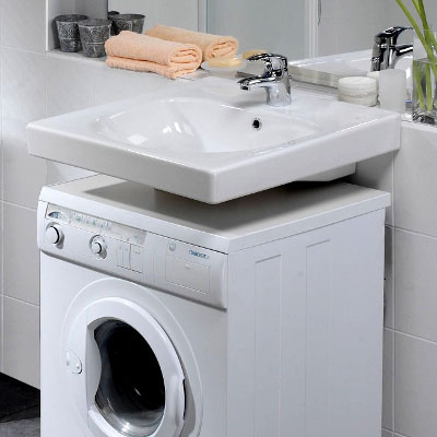 В борьбе за лишние сантиметры в малогабаритной ванной рождаются интересные идеи. Одна из них: раковина, совмещенная со стиральной машиной. Имея на руках специальные модели сантехники и бытовой техники, можно без труда воплотить в жизнь эту задумку. Раковина над стиральной машиной должна иметь плоское дно, которое позволит компенсировать множество недостатков. К ощутимым преимуществам монтажа сантехники относится ощутимая экономия пространства помещения. В зависимости от стилистических особенностей ванной, можете подобрать раковину прямоугольной, овальной или фантазийной формы подходящего к цветовой гамме тона. Раковины – кувшинки могут быть керамическими, стеклянными, композитными или сделанными из натурального камня. Чтобы решение об установке раковины, совмещенной со стиральной машиной, не вылилось в недостатки, придерживайтесь правил выбора и нюансов установки: 1. Приобретайте сантехнику особого класса. Раковина должна иметь вид кувшинки. Бытовую технику выбирайте нестандартного раз