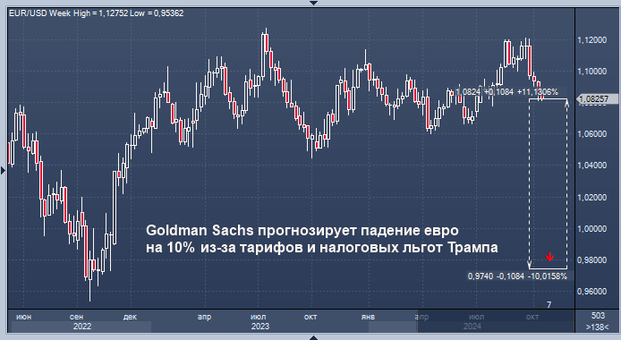 Goldman Sachs прогнозирует падение евро на 10% из-за тарифов и налоговых льгот Трампа