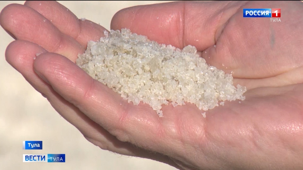 Сперва может показаться, что это песчаные дюны, но это соль, которая будет применяться зимой, чтобы на дорогах Тулы и региона не было скользко. Сейчас заготовка противогололёдной смеси идёт полным ходом на 28 пескобазах Тульской области. Константин Кириллин, первый заместитель директора, главный инженер ГУТО “Тулаавтодор”: Сейчас в руках находится галит – так называемая природная соль. С этим галитом, в зависимости от состава 10, 20 или 50 процентов – мы перемешиваем песок. К песку тоже требование – модуль крупности не менее 1,5, потому что более мелкий он не будет реагировать на снежные отложения. Также для моментального реагирования в случае резкого перепада температур заготовлен химический реагент – бионорд. 1300 тонн приобретено, чтобы справляться с ледяной коркой, которая появляется при резких сменах температур с минуса на плюс и с плюса на минус. Сергей Лукашин, заместитель директора, главный инженер Ленинского ДРСФ ГУ ТО «Тулаавтодор»: Реакция моментальная, он быстро расплавляет