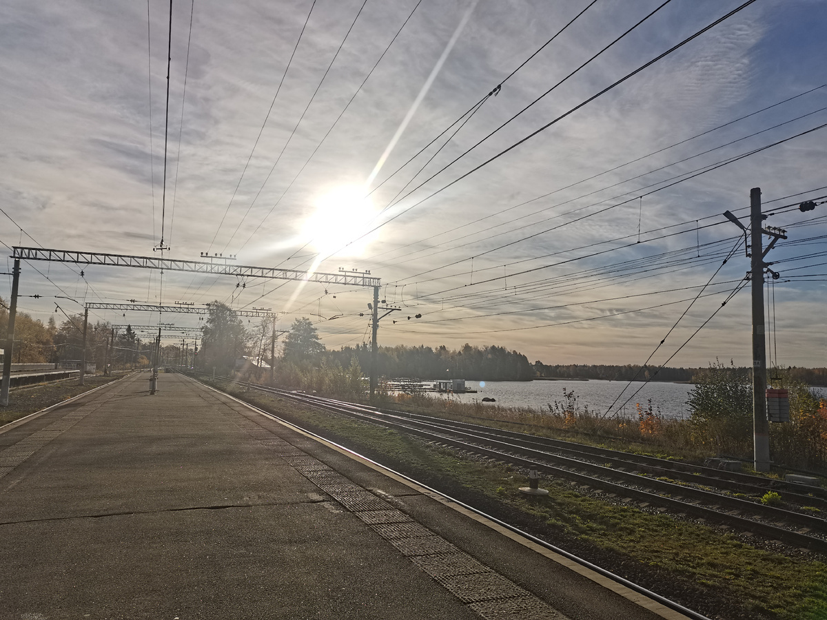 19 октября 2024 года в 10 утра на электричке из Петербурга мы приехали на станцию Приозерск. Всеми известный спуск к воде для сбора байдарки находится буквально в 100-200 метрах от платформы (61.034143, 30.106664). Нужно выйти из последнего вагона, чуть-чуть вернуться назад и перейти железнодорожные пути.
