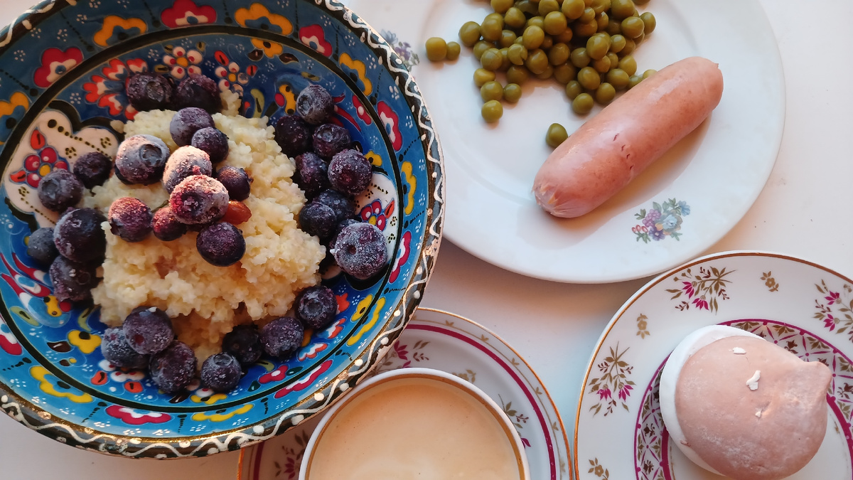 Экономное питание на 225 руб в день Ну наплакалась я сегодня вместе с вами, девочки. Но как хорошо, что мы вспомнили (и помянули) наших бабушек, снова погрузили себя в теплые минуты детства, в то беззаботное время, когда были еще старшие, которые помогали и оберегали, которые любили нас просто потому, что мы есть. Спасибо вам, что откликнулись и вместе со мной вспоминали наших бабушек. 🙏🙏🙏 На завтрак сварила сегодня пшенную кашу с изюмом и в тарелки добавила голубику. Второе блюдо - сосиски с зеленым горошком. И доели наконец-то этот зефир с кофе. На обед овощной суп-пюре, нарезка карпаччо индейки. Все как вчера. после обеда чашечка кофе с халвой и на полдник чашка кофе с бананами в шоколаде внутри в упаковке всего 6 конфет. И они своих денег не оправдывают. Съесть можно, давно хотела попробовать - вот попробовала. Но больше покупать не буду. По вкусу - как вяленый банан в шоколадной глазури. А вот халва...это просто нечто необыкновенное. Халва "Дружба", заказывала ее в "Аленке".