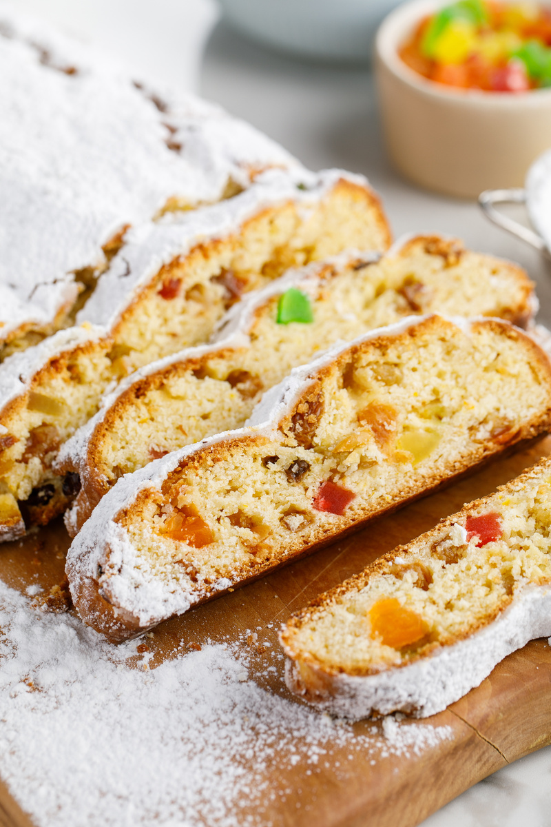 Подготовка: 35 минут Приготовление: 40 минут + пропитка 1600 г Ингредиенты: Для кекса: 500-600 г муки 150 г сахара 2 яйца 200 г сливочного масла 200 г творога 9% жирности 1 ч. л. ванильного сахара 1 ч. л.разрыхлителя 300-400 г Сухофруктов (Изюм, цукаты) цедра 1 апельсина 100 мл коньяка щепотка соли Для обсыпки и пропитки: 100 г сахарной пудры 100 г сливочного масла Каждую зиму мы традиционно готовим этот кекс перед Новым годом! Он невероятно ароматный, и его прелесть состоит в том, что он долго хранится и от этого становится еще вкуснее! Сухофрукты лучше замочить в коньяке заранее на ночь. Если вы против алкоголя, добавьте коньячную или ромовую эссенцию или просто залейте цукаты апельсиновым соком. Приготовление: 1. Сливочное масло комнатной температуры отправляем в миксер, добавляем к нему обычный и ванильный сахар и соль. Натираем туда же цедру одного апельсина и взбиваем все до белого цвета. 2. Добавляем в сахарно-масляную смесь творог и яйца. Перемешиваем все до однородной массы. 3