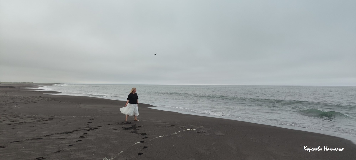 Зато океан стал нашим проводником все дни на Камчатке. Я выросла на черноморском побережье и думала: «Чем может удивить океан?» Ответ: - «ВСЕМ!» На океане мы встретили рассвет и проводили закат. Сказать, что дыхание сбивалось при виде этой мощи, ничего не сказать. Волны были не большими, но каждый раз приближаясь к воде, волна так и норовила пощекотать пятки. Мы были на Халактырском пляже с черным вулканическим песком (песок «прилетел» с нами домой). В следующей статье я подобнее напишу про пляж и Халактырские скалы.