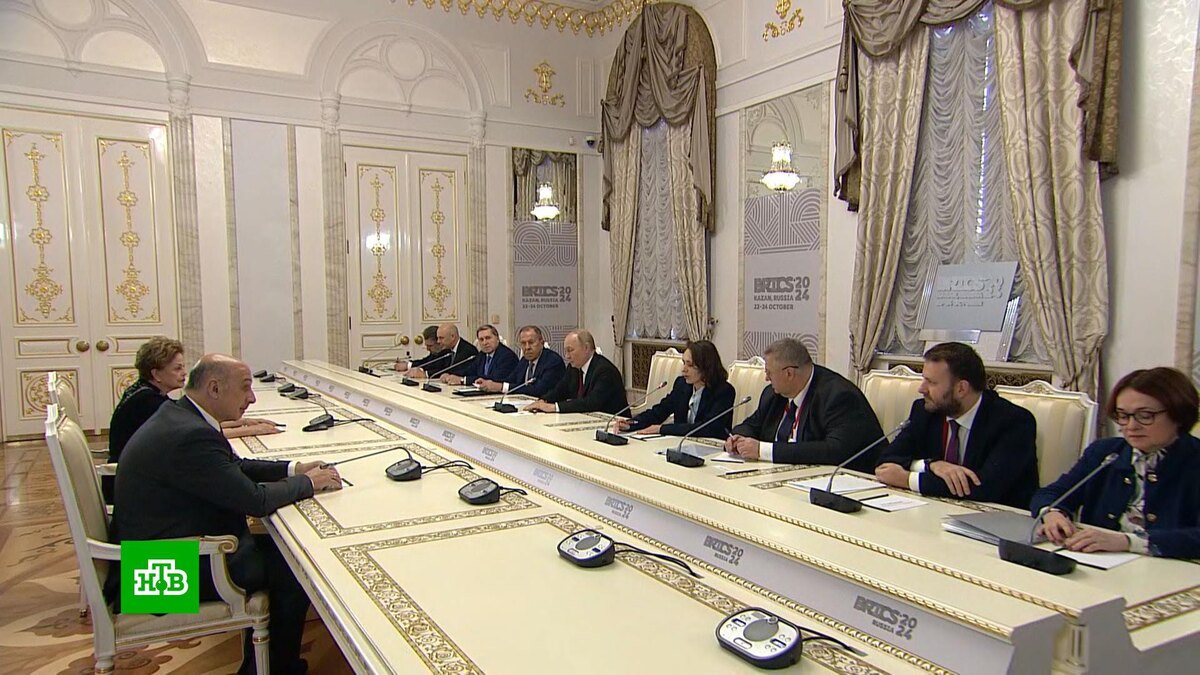 [ Смотреть видео на сайте НТВ ] Главное событие дня — саммит БРИКС — стартует в Казани. Первое официальное мероприятие Владимира Путина на полях саммита — встреча с главой Нового банка развития организации Дилмой Руссефф. Путин принимает Дилму Руссефф в Губернаторском дворце Казанского кремля. Построен дворец еще по распоряжению Николая I по проекту Константина Тона. Здесь предстоит появится и другим гостям российского президента. На встрече Путин заявил о необходимости увеличивать расчеты в национальных валютах, что минимизирует риск влияния санкций. А Руссефф еще перед встречей с российским лидером отмечала, что по ВВП страны БРИКС очень хорошо перегнали «Большую семерку», и это сотрудничество в организации еще не вышло на максимальный уровень. Владимир Путин, президент России: «Увеличение расчетов в местных валютах позволяет снизить оплату за обслуживание долга, повысить финансовую независимость стран — участниц БРИКС и максимально снизить геополитические риски, избавить, насколько