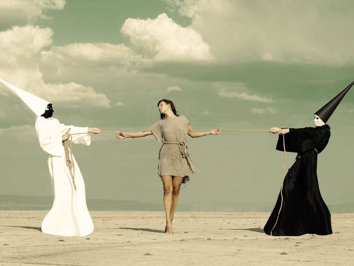 В основе обсессивно-психастенического конфликта лежит конфликт между двумя противоположными тенденциями. Между важными внутренними потребностями, желаниями с одной стороны и этическими принципами, долгом с другой. Эти тенденции равны по значимости для человека и формируют внутреннее раздвоение, ярко выраженное противоречие. Чем дольше это противоречие не разрешается, тем сильнее внутреннее напряжение. Обычно выглядит как конфликт между инстинктивным началом и этическим. Например: желание и долг, личная привязанность и моральные принципы. Такой тип конфликта формируется в семье с догматичным воспитанием, где не признают права ребенка на собственные чувства, желания. Требования к ребёнку завышенные, ожидания совершенства в поведении. Проступки жёстко караются, сексуальные потребности табуируются. Кроме этого, от взрослых поступают недвусмысленные намёки и даже угрозы относительно последствий неправомерных поступков.