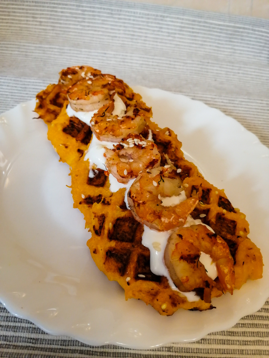 Тыквы ещё остались? Тогда скорее давайте готовить. Игридиенты на 5 тыквенных вафелек: Тыква сырая - 200гр Мука рисовая - 30гр Яйцо - 1шт Кунжут по вкусу У кого нет вафельницы - не расстраивайтесь. Эту смесь можно смело готовить на сковороде - они получатся такими же вкусными. Тыкву сырую очищаем от кожуры и трём на мелкой терке. Добавляем туда яйцо и муку. Если у вас нет рисовой муки - можно использовать и пшеничную, просто мне нравится именно рисовая, она нежнее. Всё хорошенько перемешиваем и добавляем кунжут. Я не добавляю в эту смесь соль/сахар/специи мне нравится и без них вкус пряной тыквы, но вы можете, конечно, добавить. Вафельницу хорошо разогреваем. Если готовите в виде оладушек, то рекомендую готовить на антипригарной сковороде без масла. Выкладываем нашу смесь примерно на 4 минуты в вафельницу или по 3 минуты на сковороде на каждую сторону. Готовим порционно всю смесь и у нас получаются очень вкусные вафли из тыквы - нежные, пряные, ароматные. Подавать рекоменд