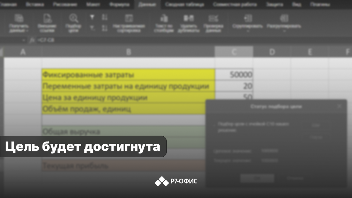 Цели бывают разные и реализуются они по-разному. Например, если цель математически достижима, ее можно просто подобрать. В этом посте мы расскажем про новую функцию, которая появилась в свежем релизе «Р7-Редакторы» версии 2024.3.2.551. Функция анализа данных «Подбор цели» позволяет пользователям изменять значения в одной из ячеек, чтобы получить нужный результат вычисления формулы. Чуть-чуть теории и переходим к практике. Обратные задачи – этот тот случай, когда необходимо выяснить, какое значение нужно ввести, чтобы получить желаемый результат. Вы стопроцентно решали такие задачи в начальной школе. У Пятачка есть один синий воздушный шарик, сколько нужно взять зелёных, чтобы всего стало два шарика. Это шуточный пример, хотя и точный, а если серьезно, то возможности подбора цели востребована в области анализа данных, связанных с финансовыми расчётами, планированием или прогнозированием. Реализация функции в формате одной кнопки, а точнее одного окна, – явление сравнительно недавнее, по