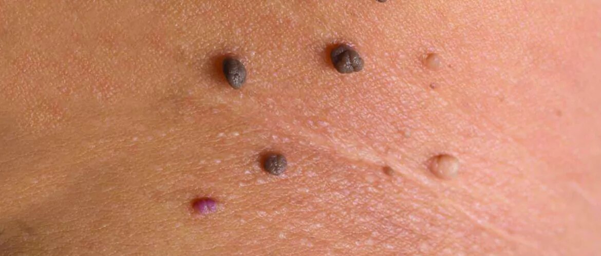 При заражении папилломавирусами 1,4,2,7 типа развиваются эпителиальные выросты возвышающиеся над уровнем кожи. Для них характерны четкие ровные контуры. Доброкачественные бородавки имеют желтовато-серый или телесный цвет. Их диаметр не превышает 1 см.