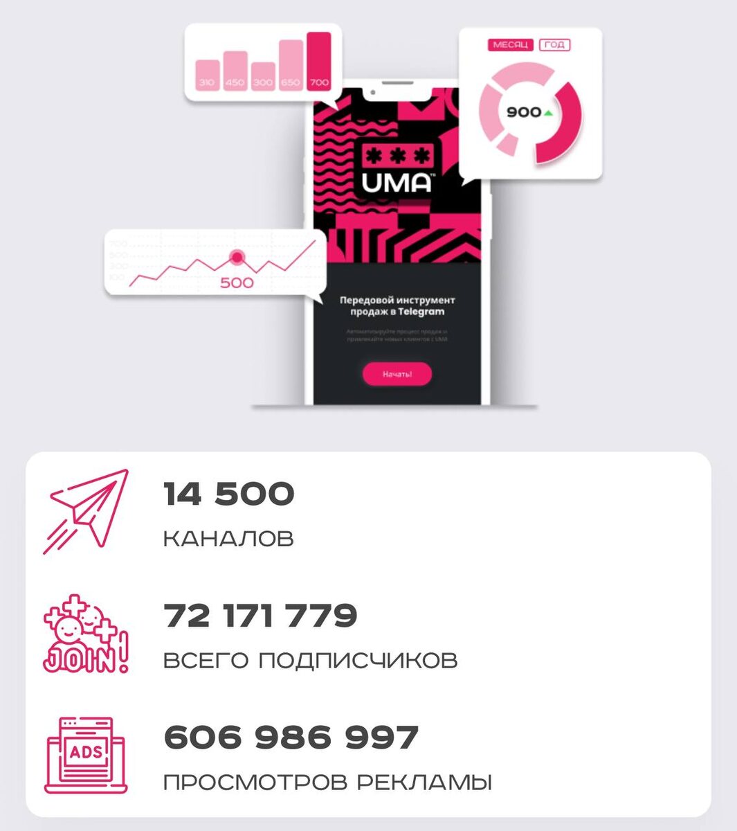 π ΠΡΠΊΡΠΎΠΉΡΠ΅ Π΄Π»Ρ ΡΠ΅Π±Ρ Π±ΠΈΡΠΆΡ ΡΠ΅ΠΊΠ»Π°ΠΌΡ Umamall! ΠΡΠ΅ΡΠ΅, Π³Π΄Π΅ ΡΠ°Π·ΠΌΠ΅ΡΡΠΈΡΡ ΡΠ΅ΠΊΠ»Π°ΠΌΡ? #Umamall β ΡΠ½ΠΈΠ²Π΅ΡΡΠ°Π»ΡΠ½Π°Ρ ΠΏΠ»Π°ΡΡΠΎΡΠΌΠ° Π΄Π»Ρ Π²ΡΠ±ΠΎΡΠ° Telegram-ΠΊΠ°Π½Π°Π»ΠΎΠ² Ρ 14 500 ΠΊΠ°Π½Π°Π»Π°ΠΌΠΈ, 72 ΠΌΠΈΠ»Π»ΠΈΠΎΠ½Π°ΠΌΠΈ ΠΏΠΎΠ΄ΠΏΠΈΡΡΠΈΠΊΠΎΠ² ΠΈ 607 ΠΌΠΈΠ»Π»ΠΈΠΎΠ½Π°ΠΌΠΈ ΠΏΡΠΎΡΠΌΠΎΡΡΠΎΠ². π ΠΡΠΎΡΡΠΎΡΠ°: ΠΡΠ΅Π³ΠΎ ΠΎΠ΄ΠΈΠ½ ΠΊΠ»ΠΈΠΊ β ΠΈ ΠΏΠ΅ΡΠ΅Π΄ Π²Π°ΠΌΠΈ ΠΌΠΈΡ ΠΈΠ· 14 500 ΠΊΠ°Π½Π°Π»ΠΎΠ² Π½Π° Π»ΡΠ±ΠΎΠΉ Π²ΠΊΡΡ ΠΈ Π±ΡΠ΄ΠΆΠ΅Ρ. Π Π΅ΠΊΠ»Π°ΠΌΠΈΡΡΠΉΡΠ΅ΡΡ Π±Π΅Π· Π»ΠΈΡΠ½ΠΈΡ