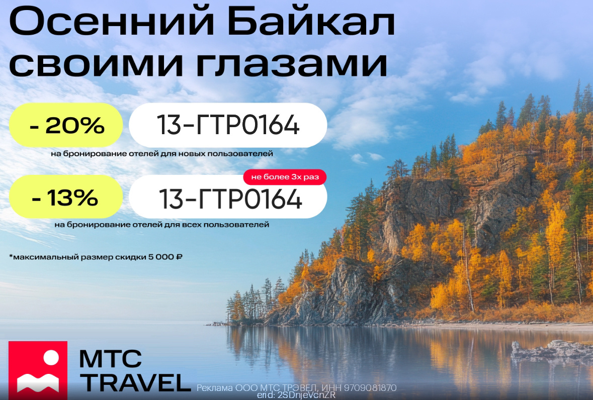Промокоды применяются только при авторизации на сервисе. Забронировать жилье и билеты по ссылке https://gtblg.ru/Ui5jWn?erid=2SDnjeVcnZR 👈