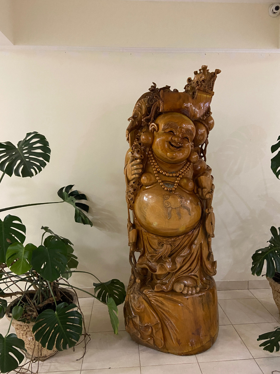 И не пожалела. Отель тематический, в китайском стиле. С набережной далеко видны его зелёные крыши в виде пагод. На входе вас встречает сам Веселый Хотэй и резные драконы.
