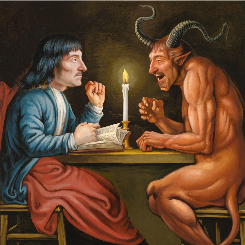 Достигнув положения, в котором, кажется, нет ничего, в чём он мог бы быть уверен, Декарт затем придумывает яркий инструмент, который поможет ему избежать возвращения обратно к предвзятому мнению: он предполагает, что есть могущественный и злой демон, который может обмануть его в чём угодно. Поэтому к любой мысли Декарт может задать вопрос: "Может ли демон заставить меня поверить в это, даже если это ложно?" и если ответ "да", он должен относиться к мысли скептически. В этот момент кажется, что Декарт поставил себя в безвыходное положение — ничто не кажется несомненным, поэтому у него нет твёрдой почвы, на которой можно было бы стоять. Он словно беспомощно кувыркается в водовороте всеобщего сомнения и неспособен найти опору. Скептицизм, кажется, сделал невозможным для него даже начать свой путь обратно к знанию и истине.