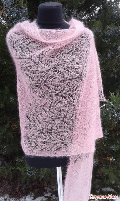 Палантин спицами, подборка со схемами + описание.