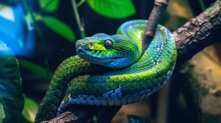 - Зеленый — абсолютный хит: именно такой цвет чаще всего имеет чешуя змеи. На выбор любой вариант от салатового до изумрудно-голубого.
