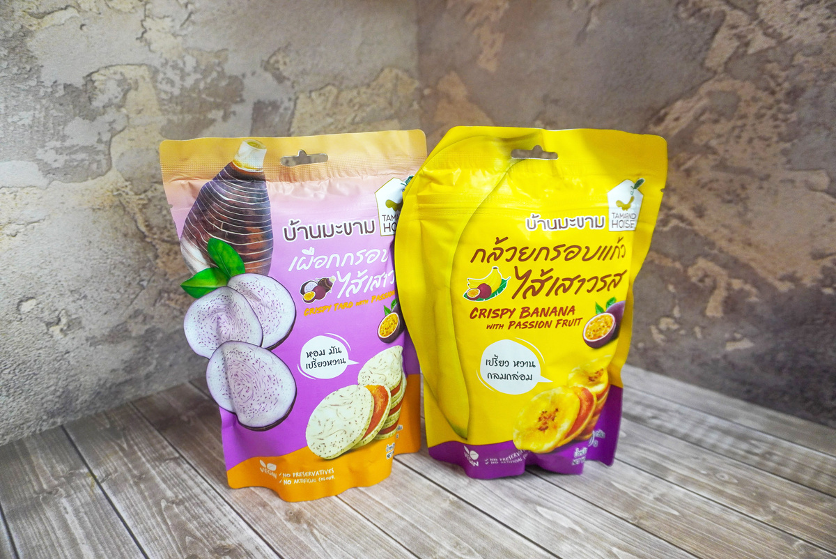Необычное лакомство прямиком из солнечного Таиланда – фруктовые чипсы из корня таро или бананов с мягким сладким джемом из маракуйи. Азиатские снеки не содержат искусственных консервантов и красителей. Жареное таро или банан с начинкой из маракуйи – необычный, вкусный и питательный десерт. Снеки имеют приятный сладкий вкус. Они полезны для детей и взрослых, а также благодаря своему растительному составу станут любимым лакомством для веганов. Тайские фруктовые чипсы Tamarind House для любителей полезных сладостей из «страны тысячи улыбок». Приобрести фруктовые чипсы Tamarind House можно в магазине «Вьет Хауз», который располагается на 1 этаже ТЦ «Ханой-Москва».