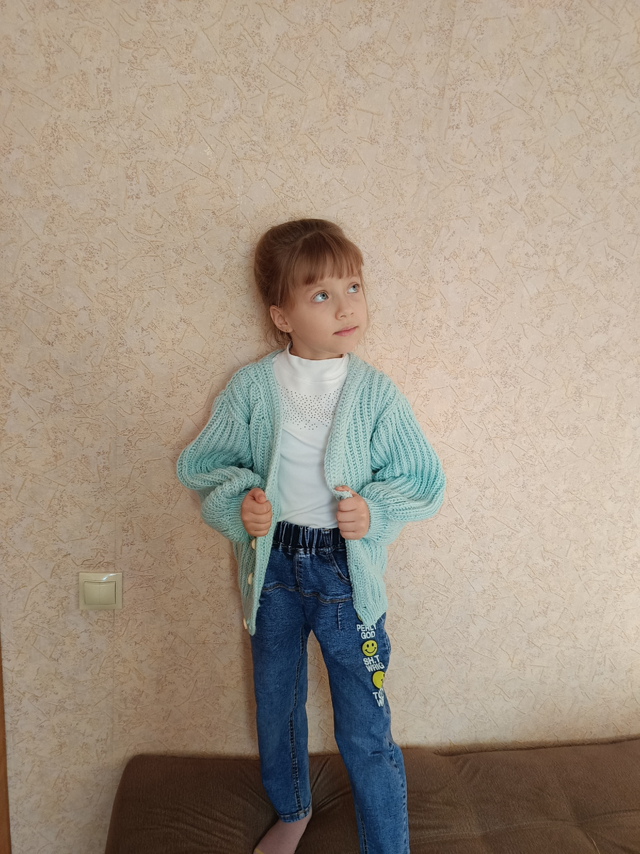 Всем доброго времени суток. Захотелось поделиться с вами историей сегодняшнего дня. Подходит Алëна ко мне со словами "мам, вот вечно ты свяжешь мне красоту, но не фоткаешь" 😁 Даже стыдно стало, исправляюсь. Как вам наша красотка? Ну, и её кардиганчик. #кардигандетский #кардиганспицами
