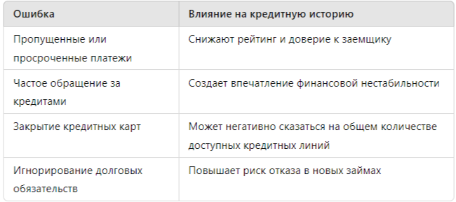 Каждая ошибка может стать препятствием на пути к получению нового кредита. Важно не только избегать этих ошибок, но и работать над исправлением кредитной истории, если они уже допущены.