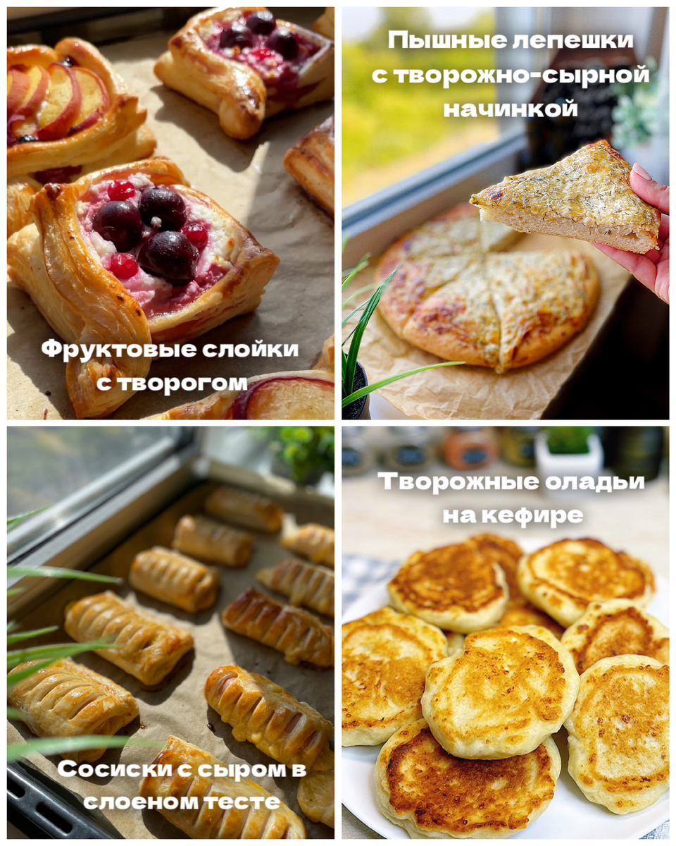 Друзья, для вашего удобства я буду делиться подборками блюд с видео приготовлением! 📌Сохраняйте и делитесь с близкими. А также не забудьте подписаться на @lidiya_foodblogger , чтоб не пропустить новые подборки 🔥 ✔️Слойки с творогом и фруктами ✔️Лепешки с творожно-сырной начинкой ✔️Вкусные сосиски с сыром в слоеном тесте ✔️Пышные творожные оладьи на кефире _______________________________ 1️⃣ Невероятно вкусные и сочные слойки с творогом и фруктами. Я использовала готовое без дрожжевое слоеное тесто , это очень удобно, его нужно только разморозить — и вперед! Смотрите видео приготовления ⤵️ ИНГРЕДИЕНТЫ •Тесто слоеное - 500 г •Творог - 200 г •Сахар - 2~3 ст.л (по вкусу, можете использовать заменитель) •Желток 1 яйца + 1 ст.л молока - для смазывания заготовок •Фрукты/ягоды - любые, по желанию Приготовление Приятного чаепития! Готовьте на радость себе и близким! 🌷 Как вам рецепт? Будете готовить? ________________________________ 2️⃣ Пышные лепешки с творожно-сырной начинкой