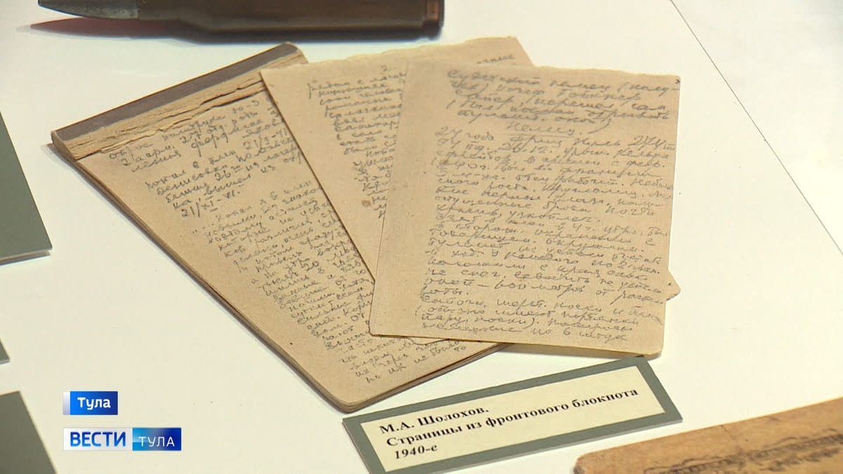 «Русский человек с несгибаемой силой воли». Именно под таким названием открылась выставка личных вещей писателя, лауреата Нобелевской премии по литературе Михаила Шолохова в стенах Музея обороны Тулы. Ирина Авдюшкина, заведующая отделом Тульского музейного объединения — “Музей обороны Тулы”: Одно из писем написал Михаилу Александровичу Шолохову совсем молодой человек, которому всего 20 с небольшим. Когда он был мальчиком и у него умер отец, и на похороны приехал фронтовой друг отца. И мальчику так тяжело было пережить эту смерть, и вот друг отца, который приехал его хоронить подарил ему книжечку, сказал: «Миша, держись! Прочитай эту книгу, она тебе поможет». Тысячи писем от читателей Михаил Шолохов получил при жизни, а сегодня их привезли в Тулу. Среди экспонатов: печатная машинка, одни из первых изданий, газетные вырезки с опубликованными первыми главами. И детали, которые хранят память о Шолохове, как о журналисте: фронтовой блокнот с заметками и подлинная военная форма. Экспозиция,