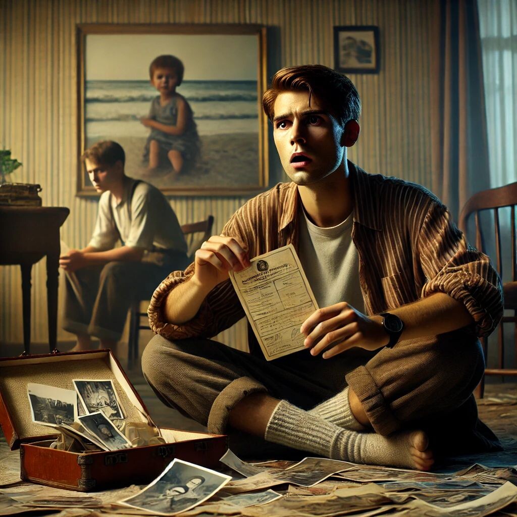Через полчаса я уже стоял в маминой квартире, разбирая старые альбомы. Синяя папка действительно нашлась — потрёпанная, с выцветшими уголками. Внутри лежало несколько документов и пожелтевший конверт.