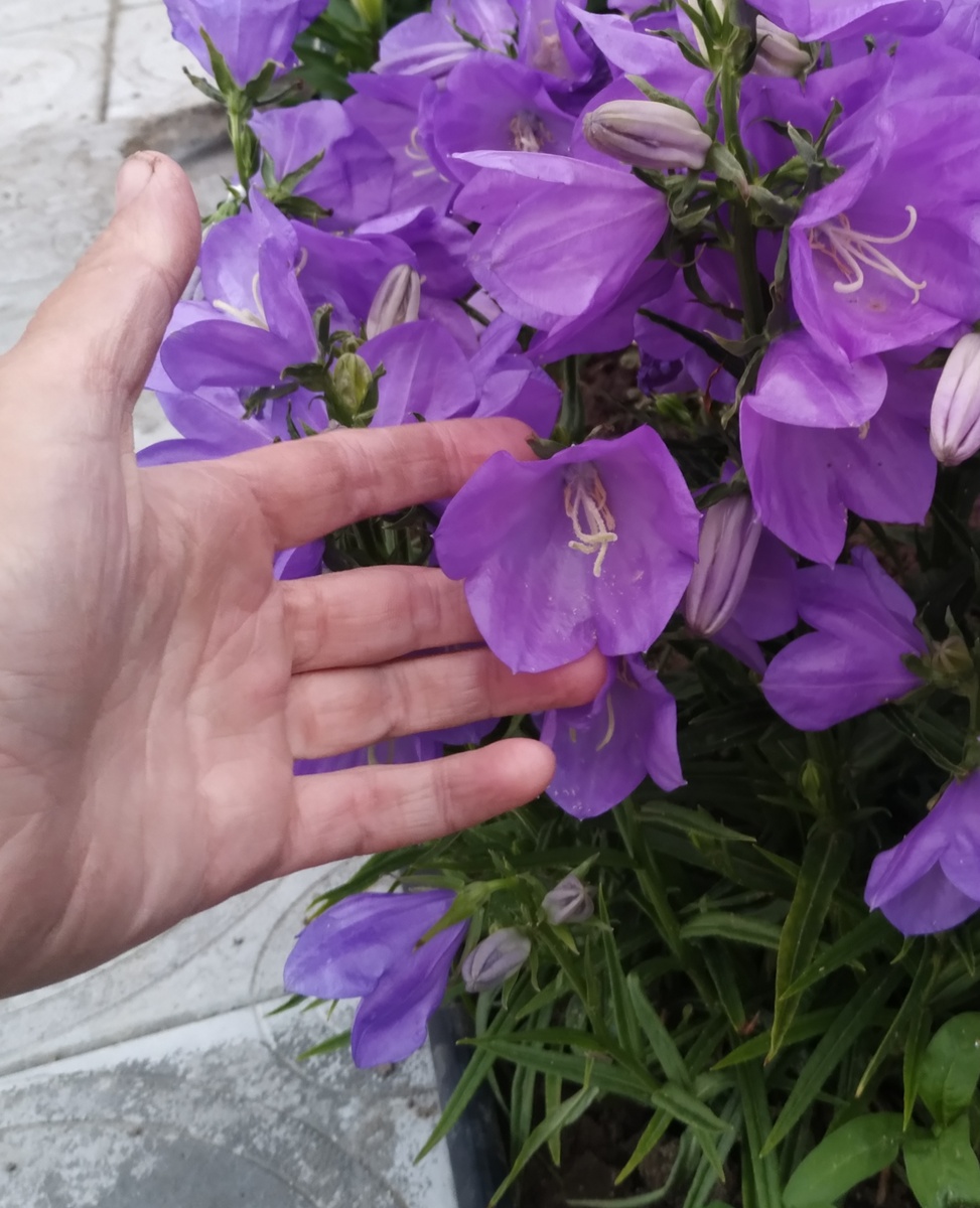 Это карликовый вид персиколистного колокольчика, высотой около 35 см.