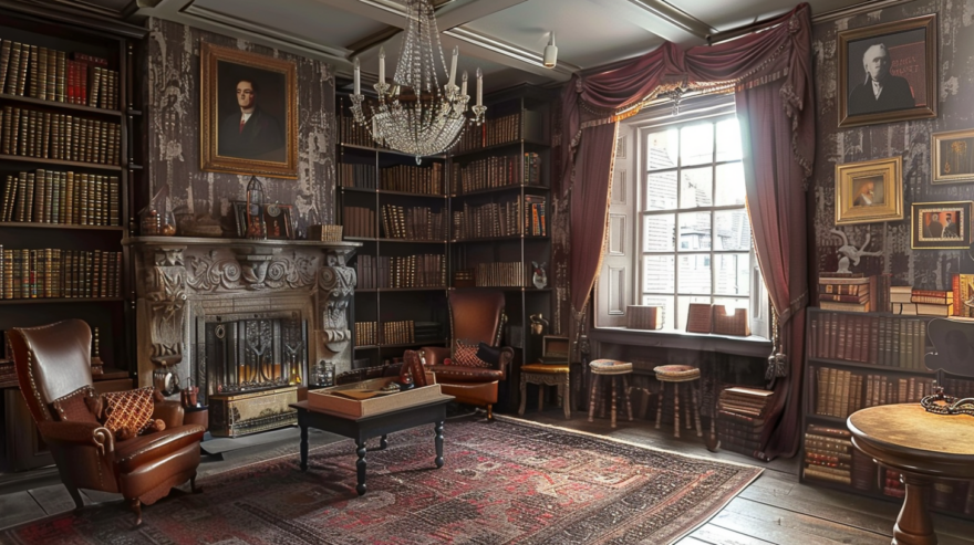 - Применяйте общие правила создания интерьера в стиле Гарри Поттер: благородные, глубокие оттенки, натуральные материалы, винтажная мебель.