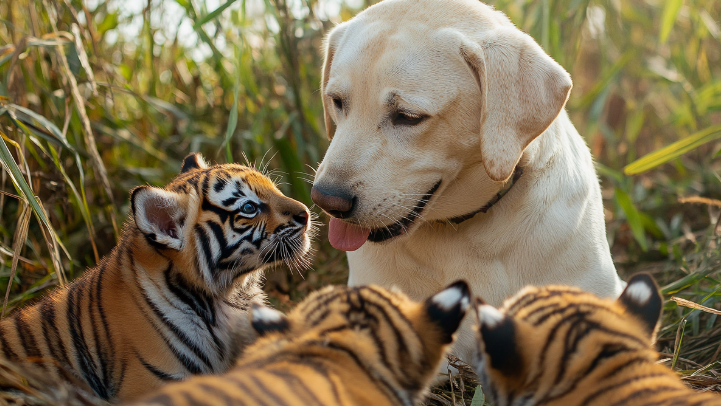 Иногда даже четвероногие питомцы воспринимают чужих детенышей как своих собственных!
