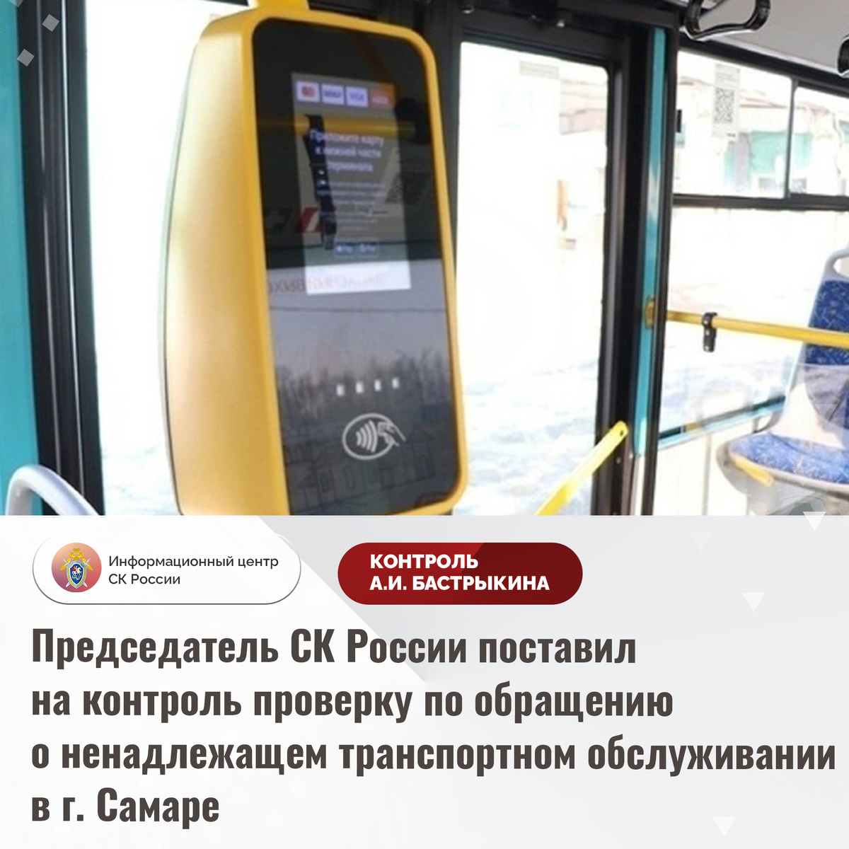 Председатель СК России поставил на контроль проверку по обращению о ненадлежащем транспортном обслуживании в г. Самаре К Председателю СК России А.И. Бастрыкину в его приёмную «ВКонтакте» обратилась многодетная мать по вопросу оказания ООО «Ремикс» транспортных услуг, не отвечающих требованиям безопасности, в городе Самаре. Водители указанной компании дважды высаживали восьмилетнюю дочь заявительницы, имеющую право на бесплатный проезд, из автобусов, не оборудованных валидаторами, из-за отказа малолетней передать им денежные средства. Также заявительница сообщает о нехватке муниципального транспорта, обслуживаемого ООО «Самара Авто Газ», из-за чего жильцы многоквартирных домов на улице Советской Армии, в том числе пенсионеры и инвалиды, не могут своевременно и беспрепятственно добраться до медицинских учреждений и иных социально значимых объектов. В СУ СК России по Самарской области по доводам комментария начата процессуальная проверка. Председатель Следственного комитета Российской Фед