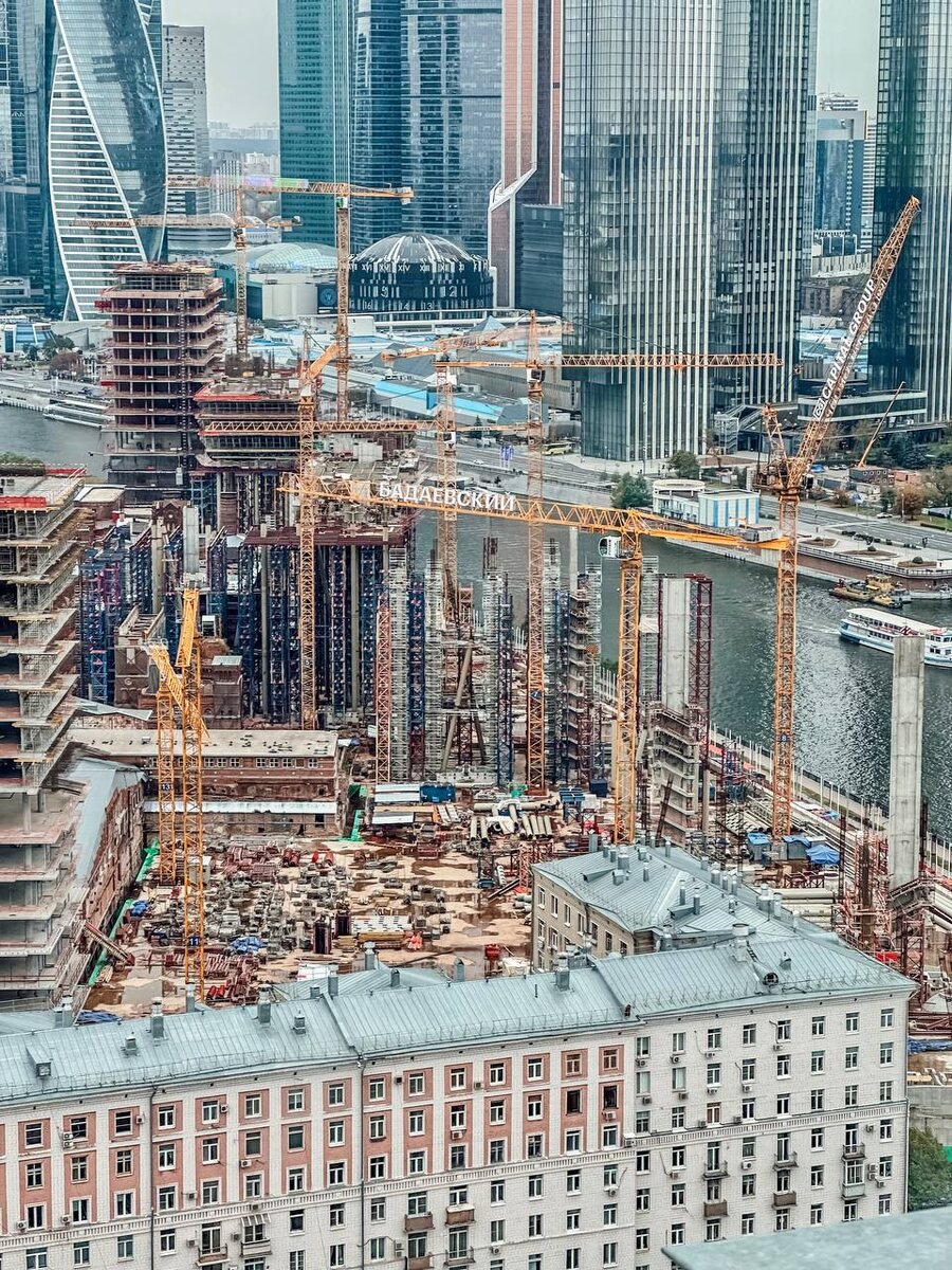 Всего во второй части (ближе к гостинице «Украина») будет смонтировано 102 колонны. Сегодня работы здесь ведутся уже на 68 опорах будущего горизонтального небоскреба.