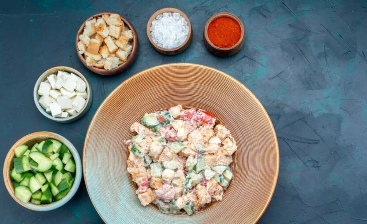 Перед подачей украсьте салат сухари