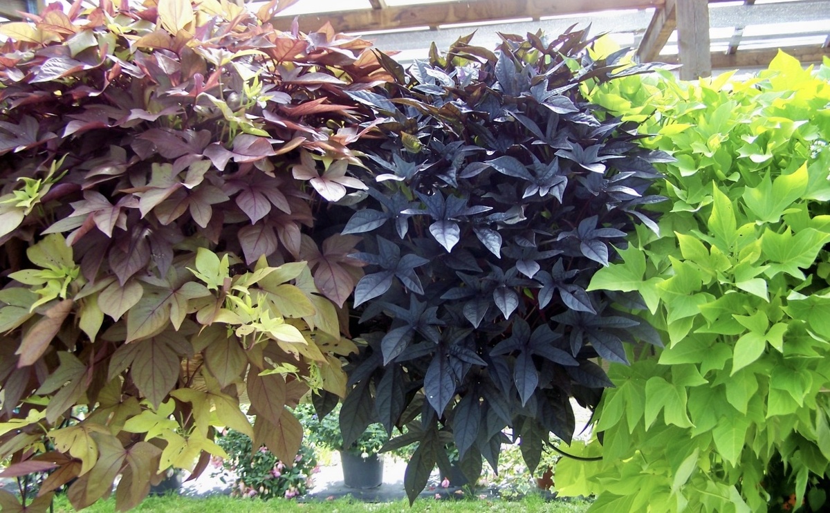 Сегодня сладкий картофель используют в качестве овощной культуры во всем мире и недавно выведенные сорта батата с пурпурными, зеленовато-желтыми и пестрыми листьями превратили эту овощную культуру в невероятно популярное декоративнолистное растение.