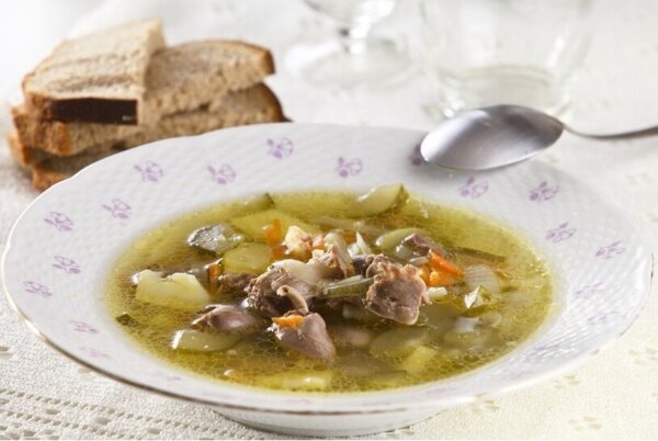 Ценители домашних супов по достоинству оценят рассольник из баранины с кроличьими почками, перловкой и солеными огурцами