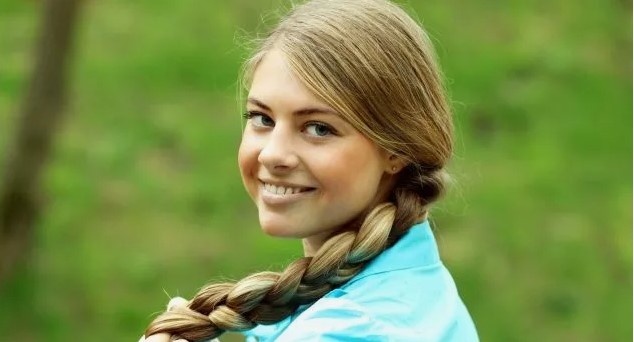 Ее русая коса была перекинута вперед и затянута маленькой симпатичной резиночкой.