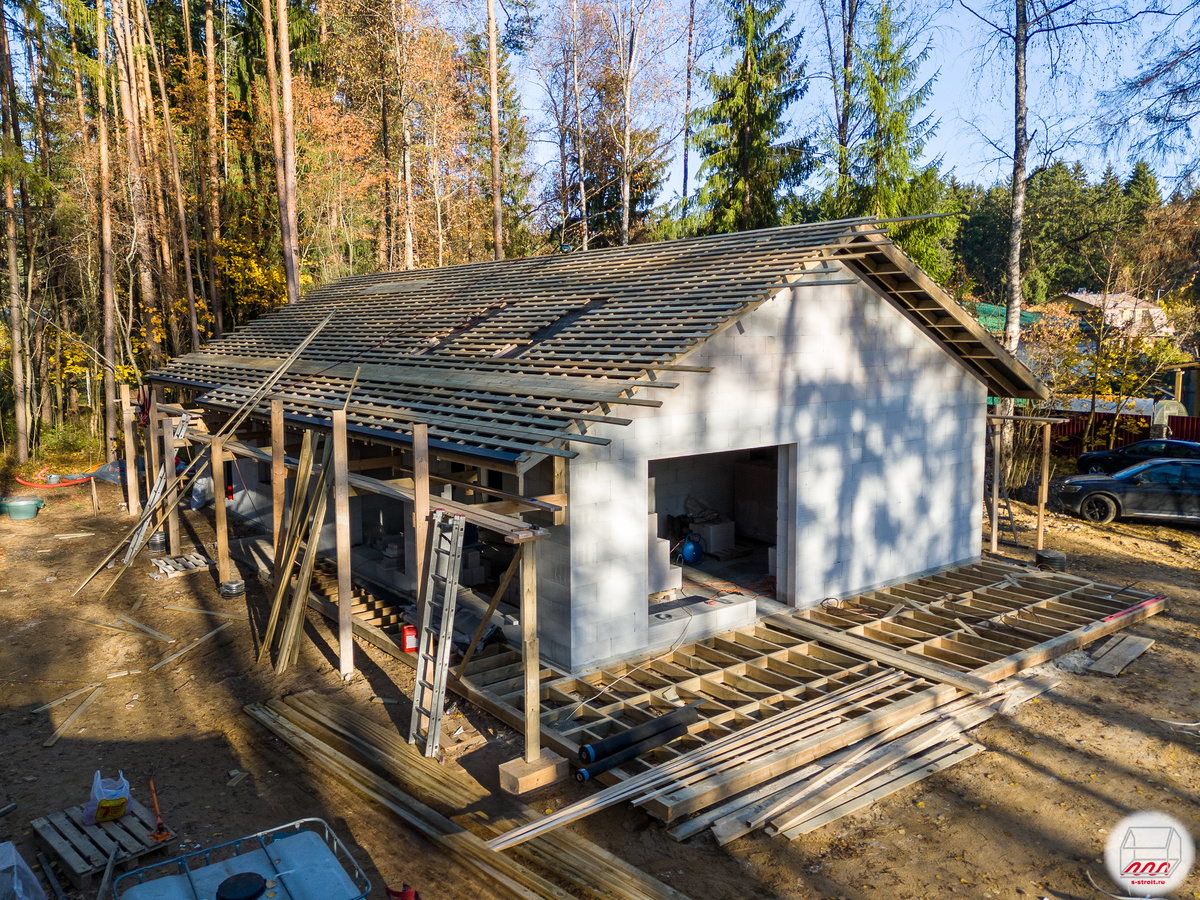 Двускатная крыша 26º дома из газобетона в Зеленогорске, делаем обрешётку под кликфальц Про