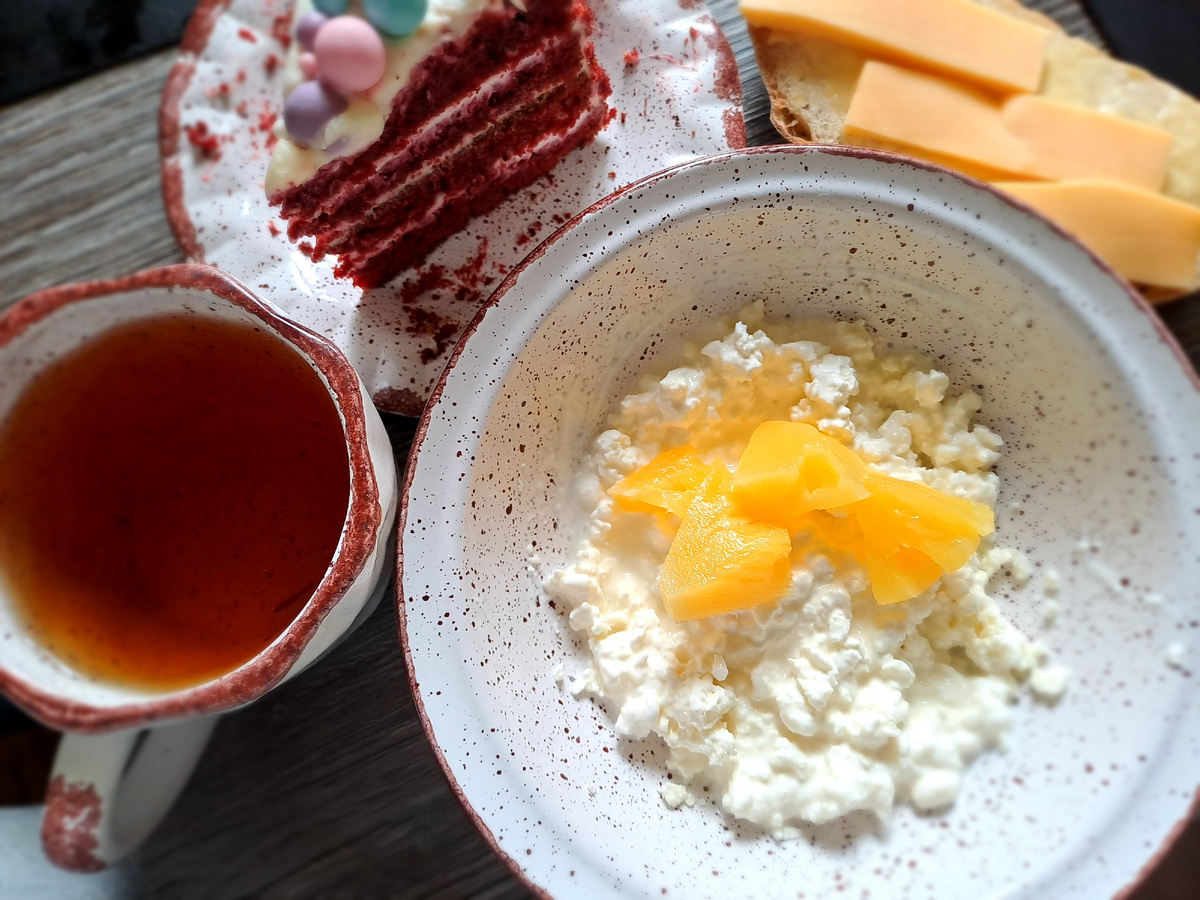 Завтрак был постпраздничным. Творог с консервированный ананасом, бутерброды с домашним хлебом и сыром. На десерт по кусочку торта. Обедали антами и салатом. На десерт - испекла пирог на закваске с вишней. Сверху остатки крема с торта. Вот так целиком выглядит. Заодно новую форму протестировала)) Мне понравилось не пригорело от формы хорошо пирог отошел. На ужин мои мужчины доедали манты с салатом. А я ела творожный пирог с ананасами. Нежный вышел, вкусный. Заметила, когда есть выпечка дома, меньше на продукты уходит денег, вкусняшек уже не хочется покупать. Поэтому стараюсь печь, все время ищу простые рецепты смешал и в духовку и чтобы вкусно потом было конечно. Съездили вечером за продуктами в магазины, и сделали большую закупку свинины. Вечером решила погладить белье, т.к. решил с мужем завтра мясо переработать. Поставьте пожалуйста лайк ❤️, вам не трудно, а мне приятно.☺️ Подписывайтесь, впереди много интересного.👍