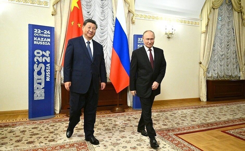 Торговое сотрудничество России и Китая активно развивается, несмотря на сложную международную обстановку, заявил председатель КНР Си Цзиньпин во время встречи с президентом РФ Владимиром Путиным в рамках саммита БРИКС в Казани. «Несмотря на сложную и серьезную внешнюю обстановку, сотрудничество стран в торговой и других сферах активно развивается, стабильно ведется работа по реализации крупных совместных проектов», - сказал Си Цзиньпин, слова которого приводит МИД КНР. Си Цзиньпин также отметил, что БРИКС, пожалуй, одна из самых важных платформ сотрудничества для консолидации развивающегося мира и стран с формирующимися рынками. Саммит БРИКС в Казани проходит с 22 по 24 октября.
