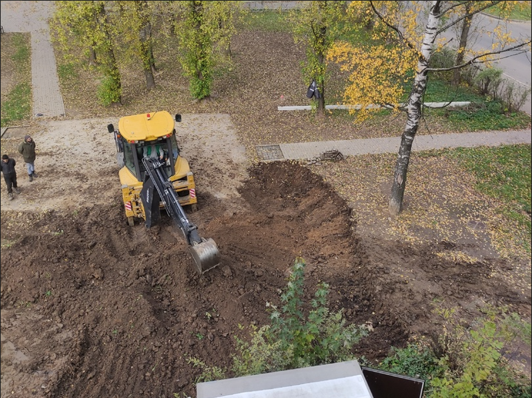 Напомним, в этом году мэрия разделила виды работ по реализации проекта «Наши дворы». Площадки готовит один подрядчик, сами городки ставит другой. Причем торги по подготовке оснований признаны несостоявшимися. Тем не менее, во вторник 22 октября работа на самих площадках все же стартовала. На приехавшую технику обратили внимание жители дома №9 по улице Нефтяников. «Что происходит? Техника безымянная, не хотят пояснить для чего ведётся раскоп? На этом участке проходят трубы, замена кусочков труб ведётся круглогодично уже 50 лет»,— переживают жители. Инициативному горожанину достаточно быстро ответили. «Ведутся работы по устройству основания под детскую площадку. Устройство площадки будет согласно схеме»,— заявили в «Агентстве по муниципальному заказу ЖКХ». Что касается самих городков, то пока определен подрядчик только по одному из муниципальных контрактов. Как ранее сообщал ЯрНьюс игровое оборудование будет устанавливать ООО «Резгор». Еще два аукциона 10 и 17 октября признаны несостоявш