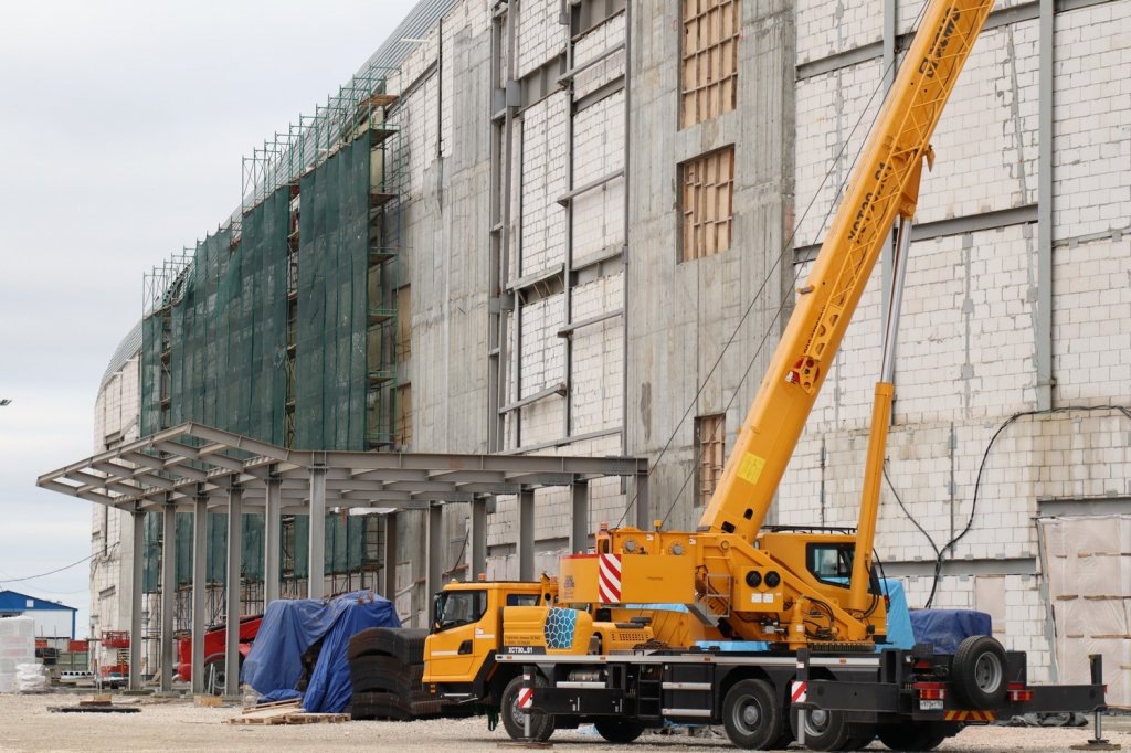 Подрядчик начал отделку фасада Ледового дворца на Стрелке в Нижнем Новгороде