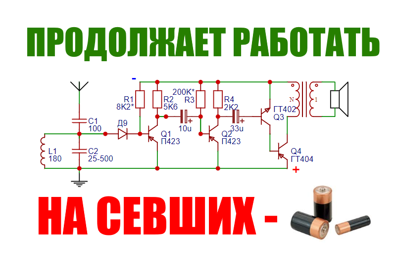 Очень простой и громкий приемник на транзисторах который работает от севшей батарейки и его может сделать каждый своими руками!Схема радиопр
