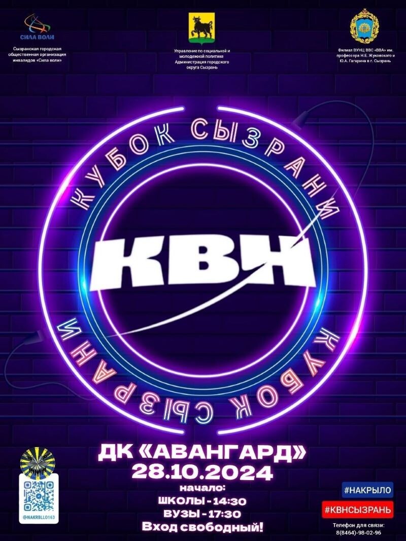 В следующий понедельник, 28 октября, в ДК «Авангард» состоятся игры городского молодежного проекта «Сызранская лига КВН». Этот городской проект более 20 лет вызывает огромный интерес у молодежи Сызрани, имеет свои традиции. В день проведения на сцену выйдут студенты СУЗов, ВУЗов города и школьники. Посетить мероприятие можно будет бесплатно. Так с 14.30-16.00 будет разыгран кубок КВН среди общеобразовательных учреждений города (возраст участников 10+). В игре принимают участие команды: ГБОУ СОШ № 6 «Неидеальные ученики»;- ГБОУ СОШ № 38 «Коммунальная квартира»; ГБОУ ООШ № 27 «Кипяток»; ГБОУ СОШ № 29 «В смысле?».