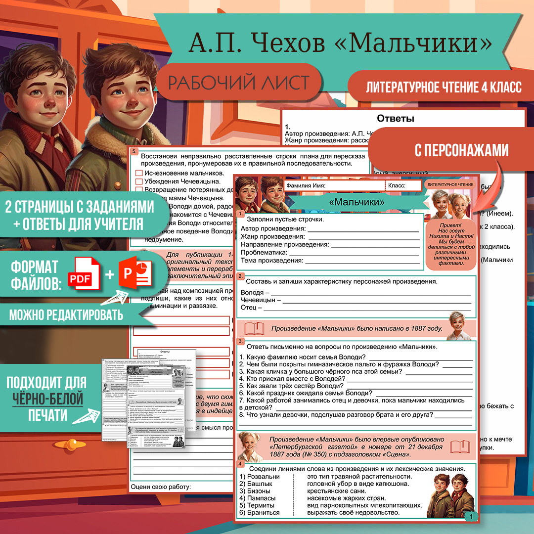Рабочий лист А.П. Чехов «Мальчики» | 4 класс Литературное чтение