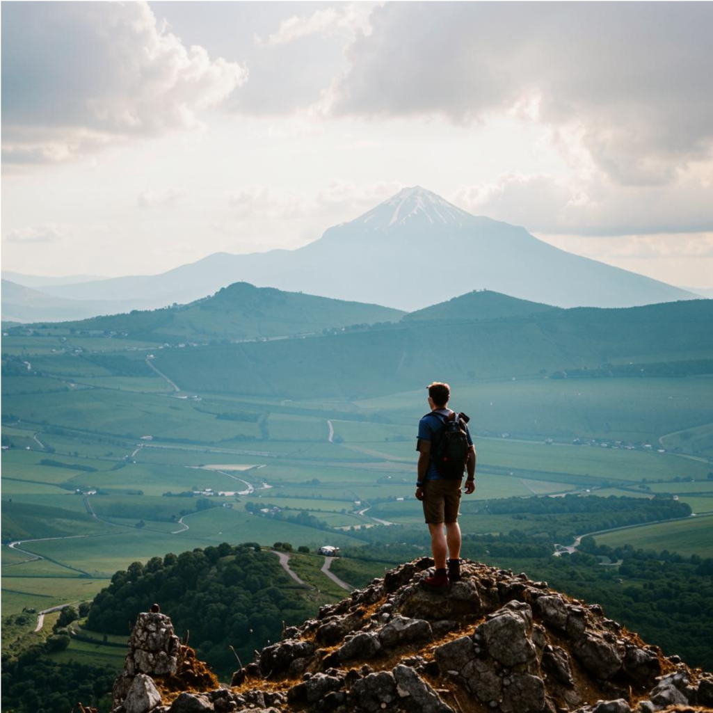 Эта фотография является символом стремления человека к исследованию и свободе. Путешественник, стоящий на краю, кажется поглощенным величественной панорамой, которая открывается перед ним. Это момент, когда человек чувствует себя частью чего-то большего, чем он сам.