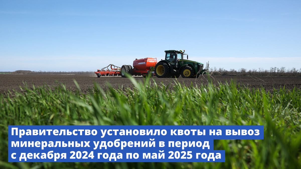 В рамках поручения Президента правительство приняло решение продлить и скорректировать квоты на вывоз из России минеральных удобрений. Они будут действовать с 1 декабря 2024 года по 31 мая 2025 года. Общий объем экспортной квоты составит около 19,2 млн т, в том числе: • для азотных удобрений – около 11,2 млн т, • сложных удобрений – почти 8 млн т. Распределить объемы квот между участниками внешнеторговой деятельности поручено Минпромторгу. Квоты не будут распространяться, в том числе на поставку удобрений в Абхазию и Южную Осетию, а также на вывоз с территории России в рамках международных транзитных перевозок. Принятое решение направлено на поддержание достаточных объемов удобрений на внутреннем рынке.