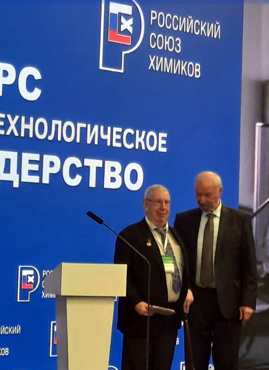 22 октября 2024 года, на Общем годовом собрании Российского союза химиков (состоявшегося на площадке ЦВК «Экспоцентр», в рамках мероприятий Московского международного химического форума ММХФ-2024 и 27-й Международной выставки химической промышленности и науки «ХИМИЯ») состоялось вручение кандидату химических наук профессору Михаилу Георгиевичу Беренгартену медали «За успехи в развитии химической промышленности России» имени Л.А. Костандова. Вручил награду президент Российского союза химиков Виктор Петрович Иванов. Поздравляем Михаила Георгиевича с заслуженной наградой!